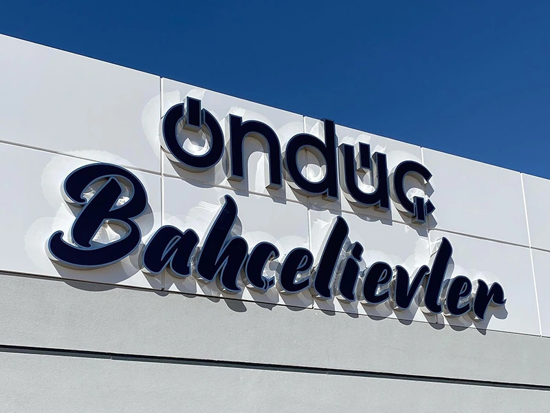 Bir Kocaeli cephe yazısı üretimi, öncelikle keşif ve ölçülendirme çalışmasıyla başlar. Ardından tasarım-onay süreci tamamlanır ve üretim aşamasına geçilir. Harfler, seçilen malzeme üzerinde CNC kesim yöntemiyle hazırlanır. İsteğe göre harflerin yüzeyleri fırın boya veya statik boya ile kaplanır ki dış etkenlere karşı dirençli olsun. Montaj sırasında harfler bazen “standoff” adı verilen mesafe aparatıyla duvardan birkaç santimetre öne çıkarılır; bu sayede üç boyutlu (3D) bir etki oluşturulur. Bu teknik, cephe yazısı uygulamalarında hem estetik hem de profesyonel bir duruş sağlar.